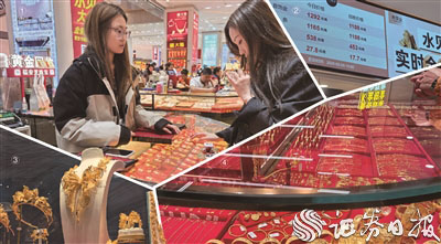 记者注意到,随着金价持续抬升,消费需求出现变化,带有“小克重”“国潮风”“IP联名款”等标签的黄金首饰成为消费者“新宠”。吉鑫珠宝柜台的工作人员吴晓向记者介绍:“根据市场需求的变化趋势,我们推出了多款设计新颖的黄金首饰。此外,我们黄金手机贴等创新产品也成为爆款,临近春节,带有‘骏马’‘元宝’图案的手机贴十分畅销。”